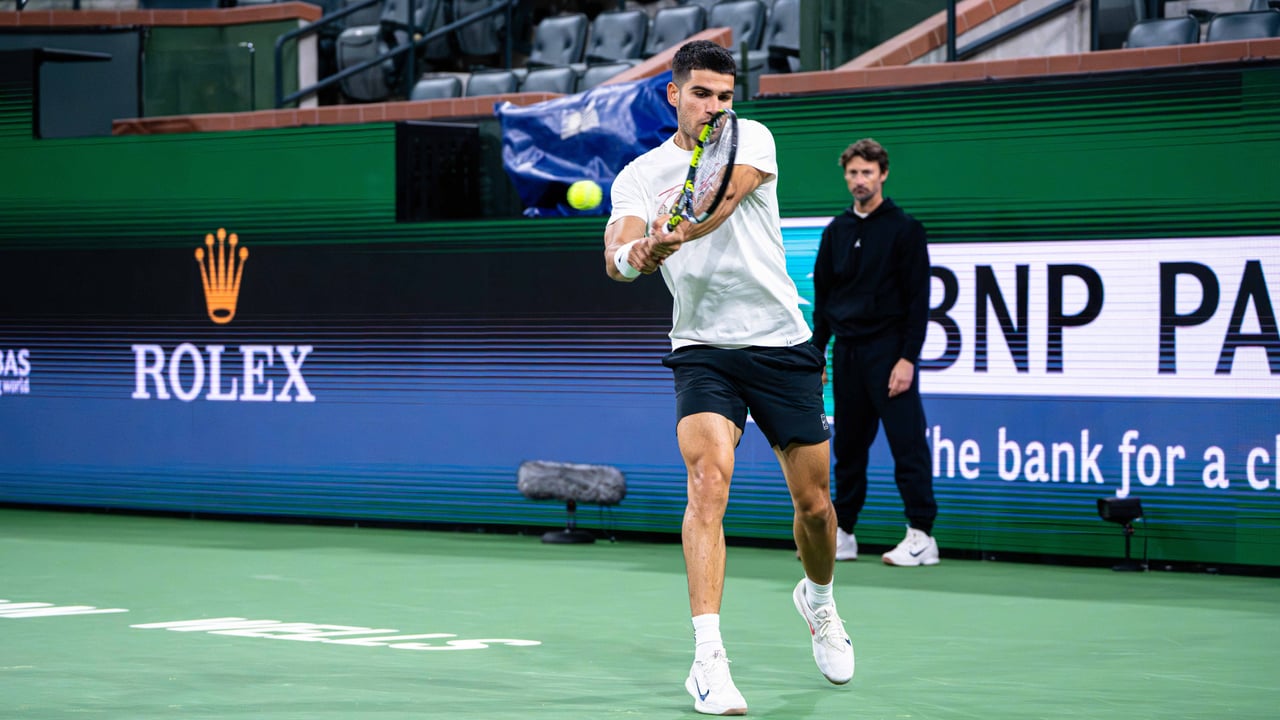 Carlos Alcaraz ya está de vuelta. Tras unas semanas de parón después de caer en los cuartos de final de Doha, en las que ha aprovechado para descansar el mundo y seguir recorriendo el mundo para jugar exhibiciones, esta vez en Puerto Rico, Alcaraz llega a uno de sus torneos fetiche, Indian Wells. El evento californiano, donde ha ganado en los últimos dos años, le va a recibir con los brazos abiertos, puesto que busca un hito, emular lo que hicieron Roger Federer y Novak Djokovic, triunfar tres veces seguidas en el Valle de Coachella.