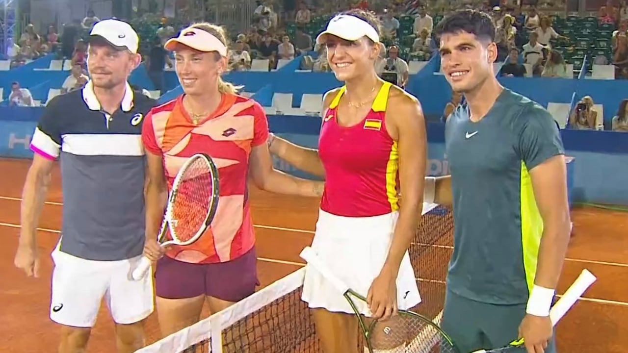 Los españoles Carlos Alcaraz y Rebeka Masarova sucumbieron ante los belgas David Geffen y Elise Mertens (6-3 y 6-1) en apenas una hora y dos minutos y comprometieron su continuidad en la Copa Hopman que se disputa en Niza. La pareja española se reunió por primera vez para decidir un punto complicado.