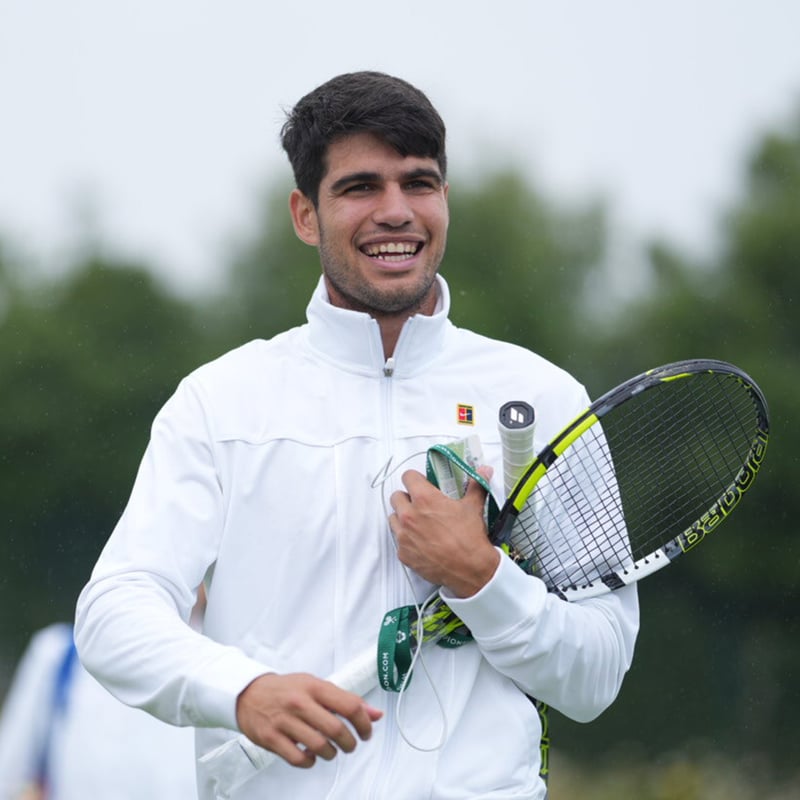 buena cara, pese a la lluvia de Alcaraz esta mañana en Londres...
