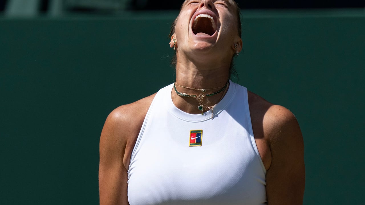 Aryna Sabalenka tras ganar un partido en WimbledonWTA