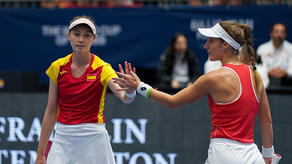 Cristina Bucsa jugando un dobles con la selección española@RFETenis