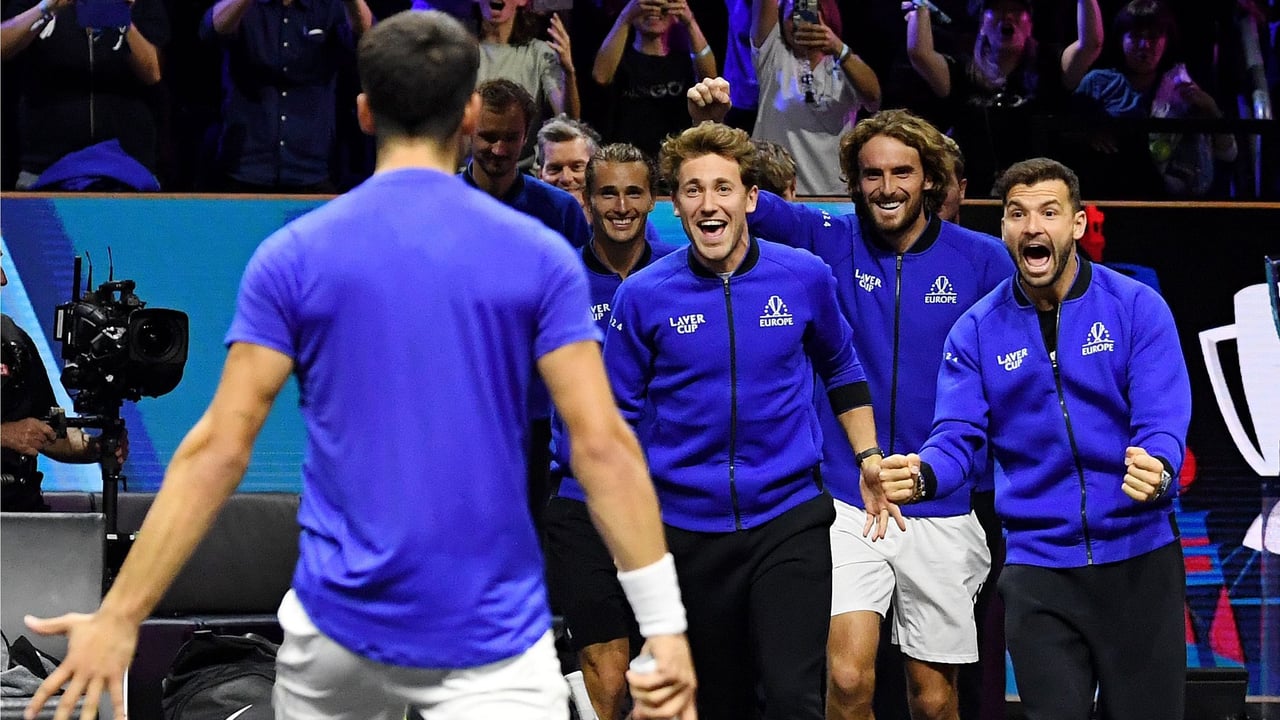 Grigor Dimitrov celebrando la victoria de Europa en la Laver Cup @lavercup