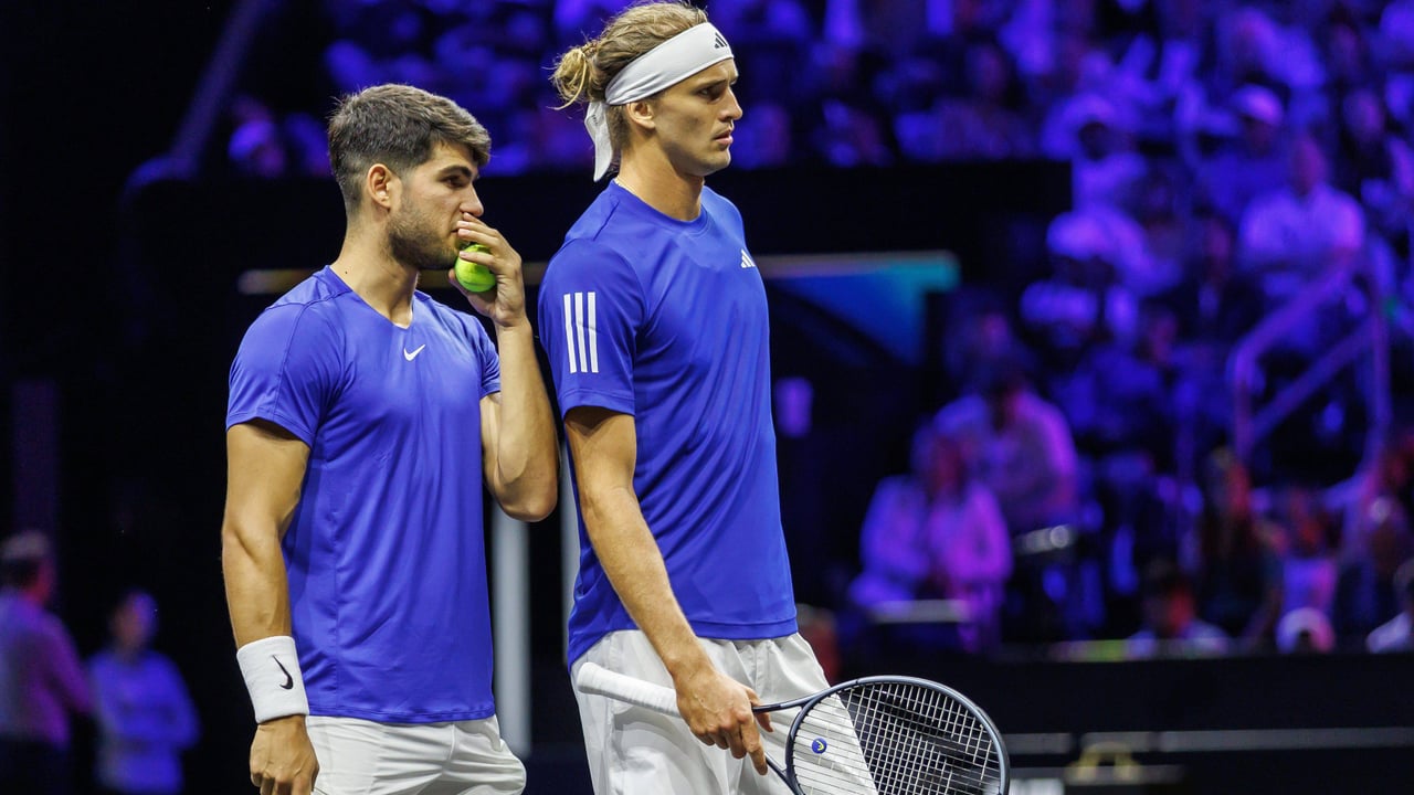 Carlos Alcaraz y Alexander Zverev disputando un partido de dobles en la Laver CupCordon Press