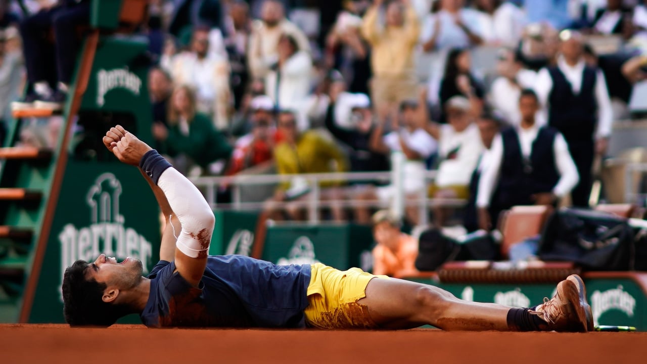 Carlos Alcaraz celebrando su triunfo en Roland Garros 2024 tras superar en la final a Alexander Zverev@rolandgarros