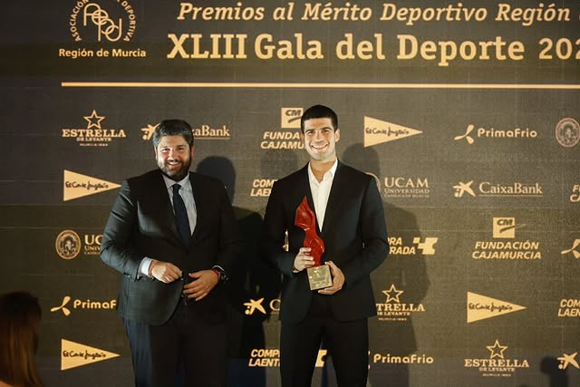 Carlos Alcaraz ha recibido el galardón que le acredita como el mejor deportista de la Región de Murcia, un premio muy especial para alguien como él, que siente devoción por sus raíces