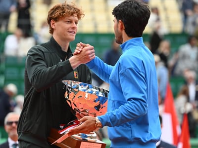 Carlos Alcaraz ha sido incapaz de ganarle un set a Sinner en Montecarlo.IMAGO