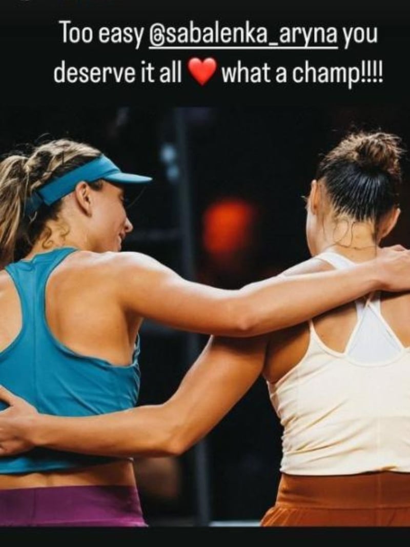 "Me encantan tus discursos ¡los mejores dentro y fuera de la cancha!", escribía la catalana en su perfil de X -antigua Twitter-, al tiempo que en Instagram también dejaba una felicitación para Sabalenka: "Te lo mereces todo. Menuda campeona!!!!".