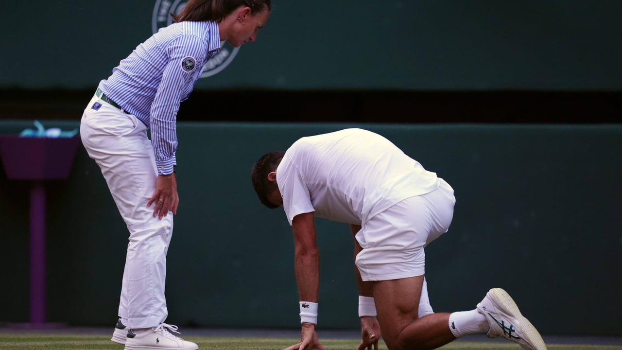 El año parece estar gafado para Novak Djokovic en cuanto a Grand Slams se refiere. En el Open de Australia soportó el dolor de una lesión y remontó su partido ante Carlos Alcaraz, pero le obligó a retirarse ante Zverev en plena semifinal cuando perdió la primera manga. En Roland Garros, cayó en la misma fase ante un potente Sinner que le venció por la vía rápida en tres sets. Y, ahora, una caída inoportuna, le podría privar de jugar incluso las 'semis' en Wimbledon.