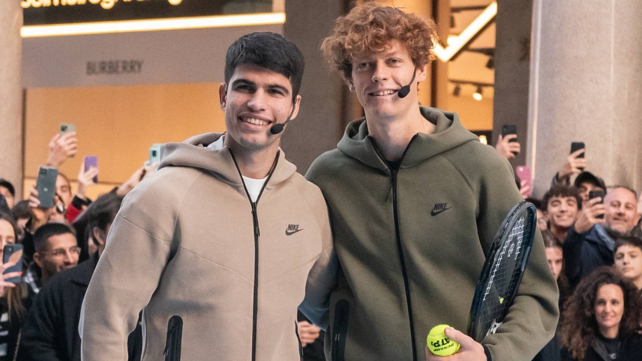 Jannik Sinner junto a Carlos Alcaraz en un acto promocionalCORDON PRESS