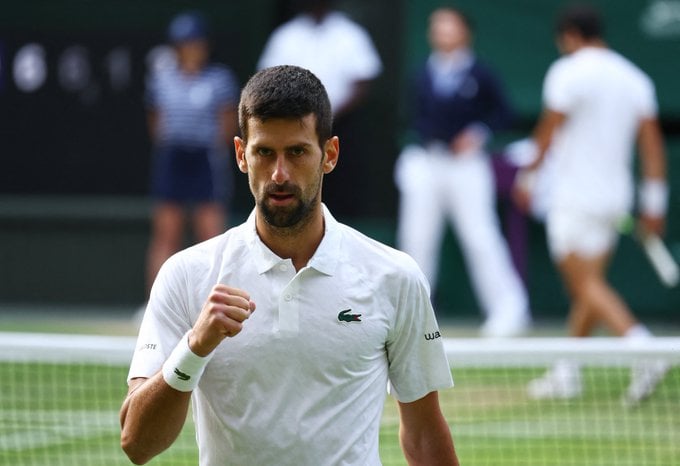 El vigente campeón de Wimbledon, Novak Djokovic, ha tenido un camino bastante parecido al de Carlos Alcaraz a lo largo del torneo. Tan sólo ha cedido dos sets en los seis choques que ha disputado en la hierba londinense. En primera ronda venció al argentino Pedro Cachín, en segunda a Jordan Thompson, en tercera al suizo Wawrinka. Ya en octavos se dejó un set ante Hurkacz para acabar finalmente mandándolo a la lona en tres horas y diez minutos. En cuartos de final ante Rublev comenzó perdiendo la primera manga, pero el tenista balcánico se repuso para acabar ganando los tres siguientes sets por 6-1, 6-4 y 6-3. En 'semis' no dio chance al italiano Sinner, al que venció dos horas y 47 minutos con un marcador de 6-3, 6-4 y 7-6.