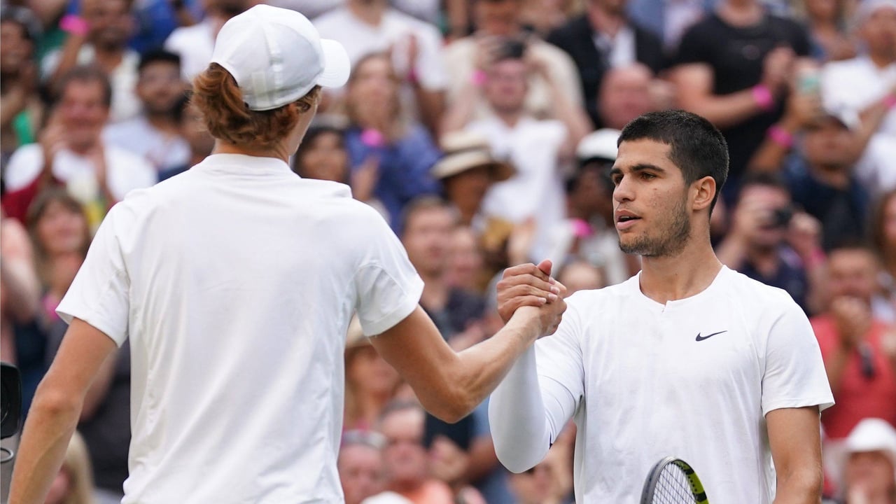Carlos Alcaraz y Jannik Sinner tras octavos de final de Wimbledon 2022Cordon Press