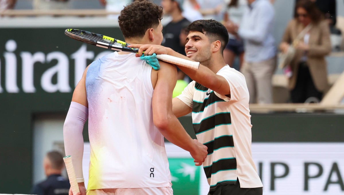 Carlos Alcaraz y Ben Shelton tras enfrentarse en octavos de final de Roland Garros 2025Cordon Press