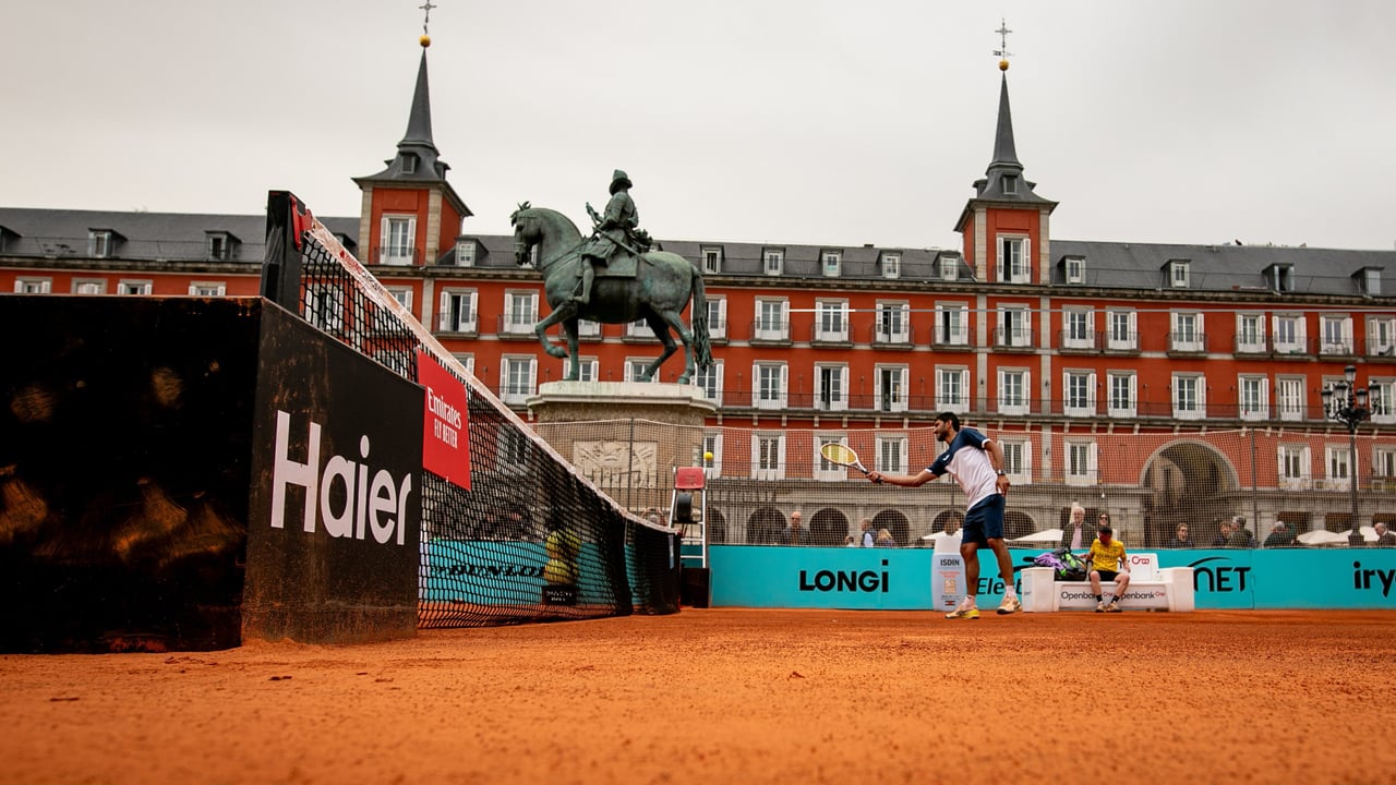 La pista que se ha instalado en la Plaza Mayor de Madrid para promocionar el Mutua Madrid OpenCordon Press