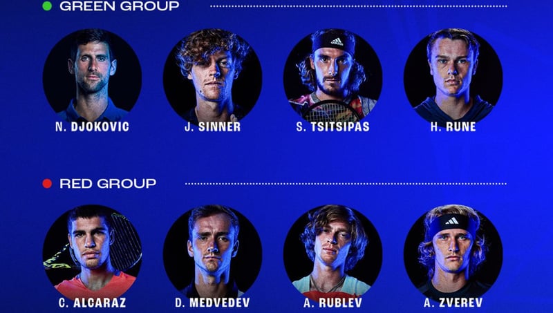 El número uno del tenis mundial Novak Djokovic, por su parte, ha quedado encuadrado en el Grupo Verde junto al italiano Sinner, al griego Tsitsipas y al danés Rune.