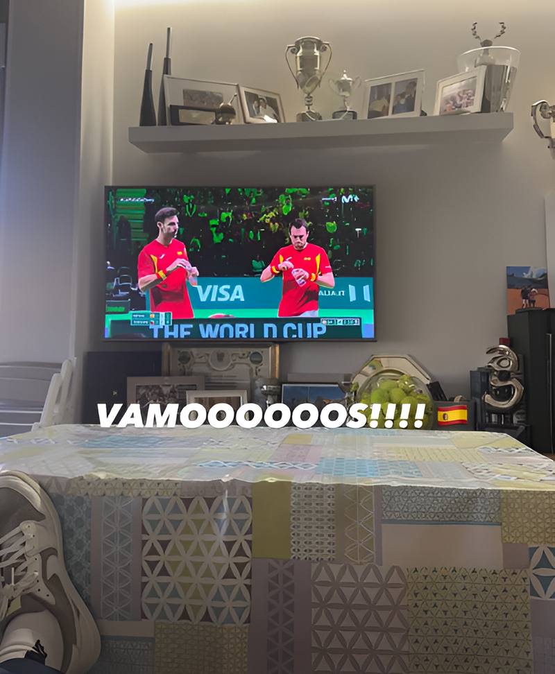 El número uno del mundo ha publicado una imagen de su salón, cargadito de trofeos, siguiendo el partido de dobles. Con su característico "¡Vamooosss!" ha celebrado el gran triunfo de España contra República Checa. Ahora, el equipo de David Ferrer espera rival para estas semifinales, que saldrá del país campeón entre Argentina y Alemania, que se disputan el pase esta misma tarde.