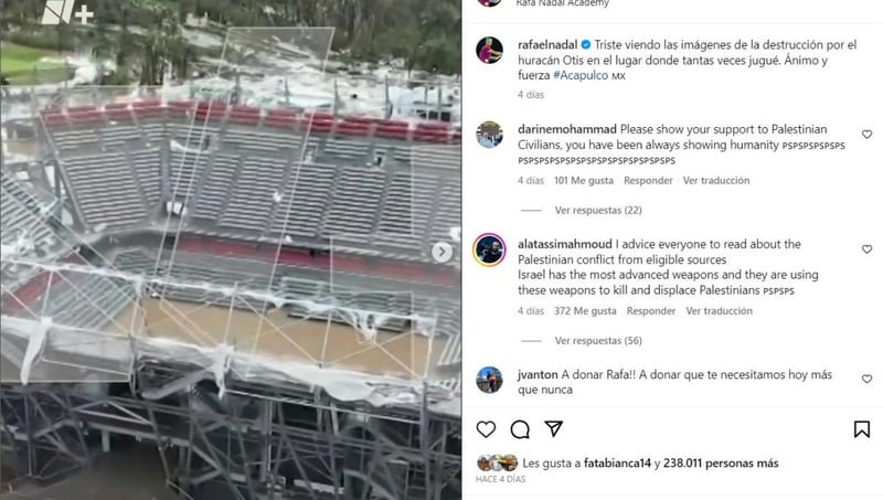 El tenista balear se ha querido solidarizar con Acapulco tras el paso del huracán Otis, que ha dejado casi 40 muertos y ha producido daños graves en la zona hotelera y en el recinto donde se juega el Open que él ganó cuatro veces