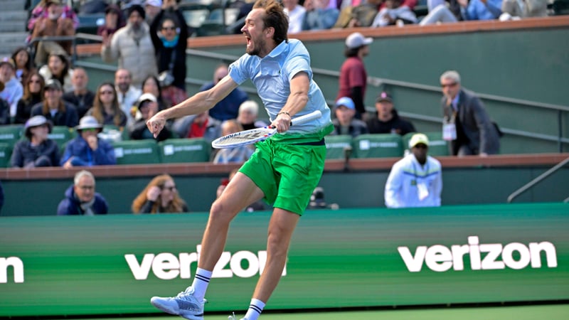 En el cuarto de final que faltaba y del que iba a salir el rival de Holger Rune, Daniil Medvedev no falló. El ruso no se adapta a la pista tan lenta del Valle de Coachella, pero sigue ganando, aunque esta vez lo ha hecho con sufrimiento. Al moscovita, finalista en las últimas dos ediciones , en las que Alcaraz le privó del título, le costó doblegar al francés Arthur Fils, al que derrotó en un ajustado 'tiebreak' en el tercer set. El ruso se impuso 6-4, 2-6 y 7-6 en 2 horas y 25 minutos de juego.