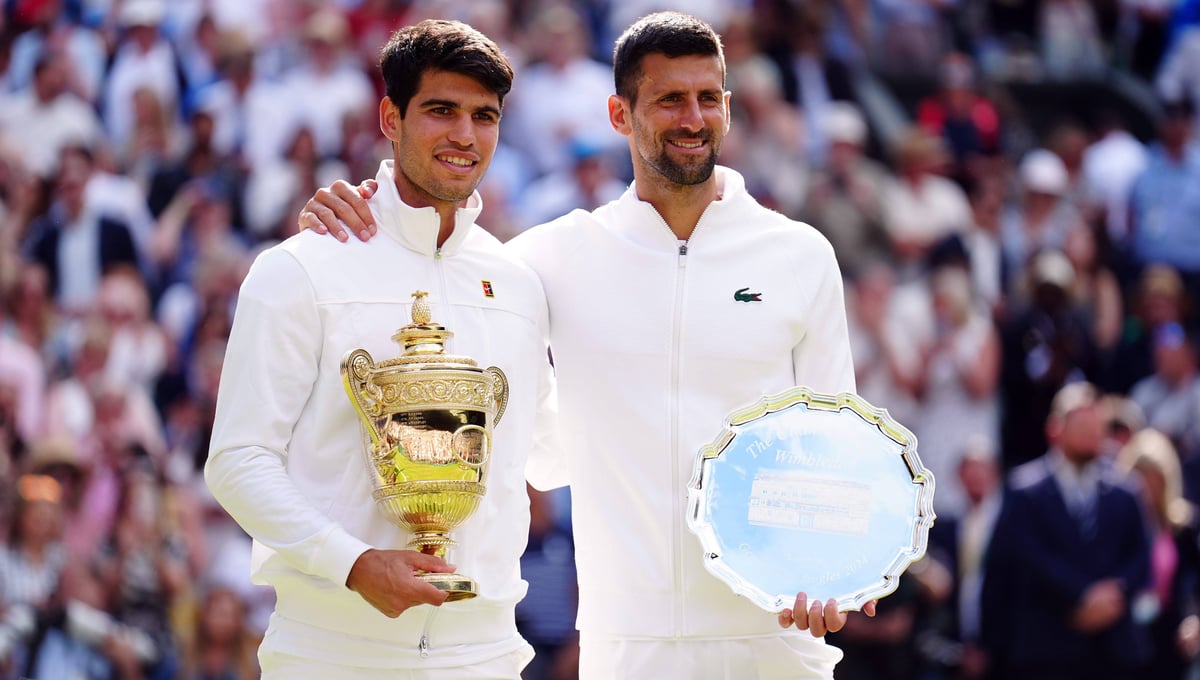 Carlos Alcaraz y Novak Djokovic, en la final de Wimbledon 2024Cordon Press